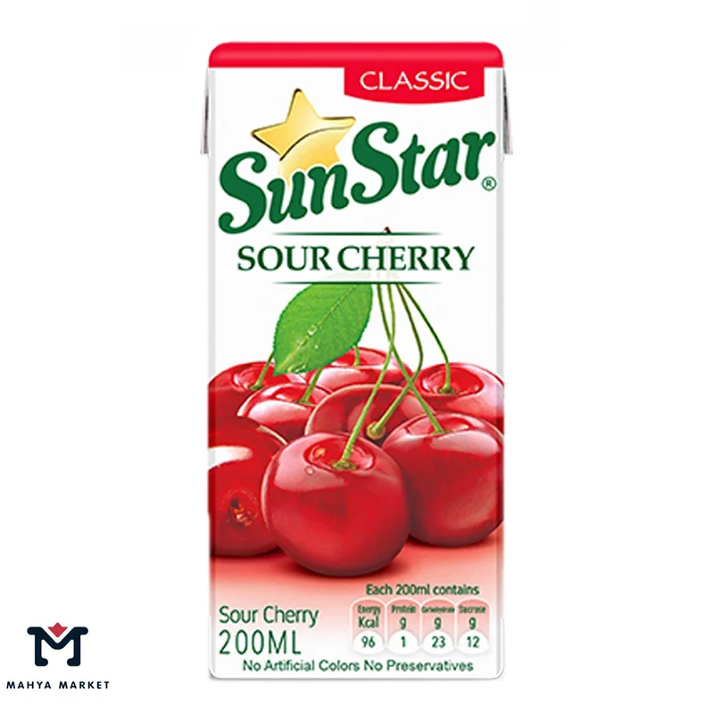 آبمیوه آلبالو سان استار، انتخابی بینظیر برای لحظات تازگی و شادابی! با حجم 200 میلیلیتر، این نوشیدنی خوشطعم و طبیعی، انرژی روزانهتان را تامین میکند. حاوی ویتامینهای مفید و بدون مواد نگهدارنده، همراهی ایدهآل برای هر وعده غذایی. لذت طعم واقعی آلبالو را تجربه کنید!