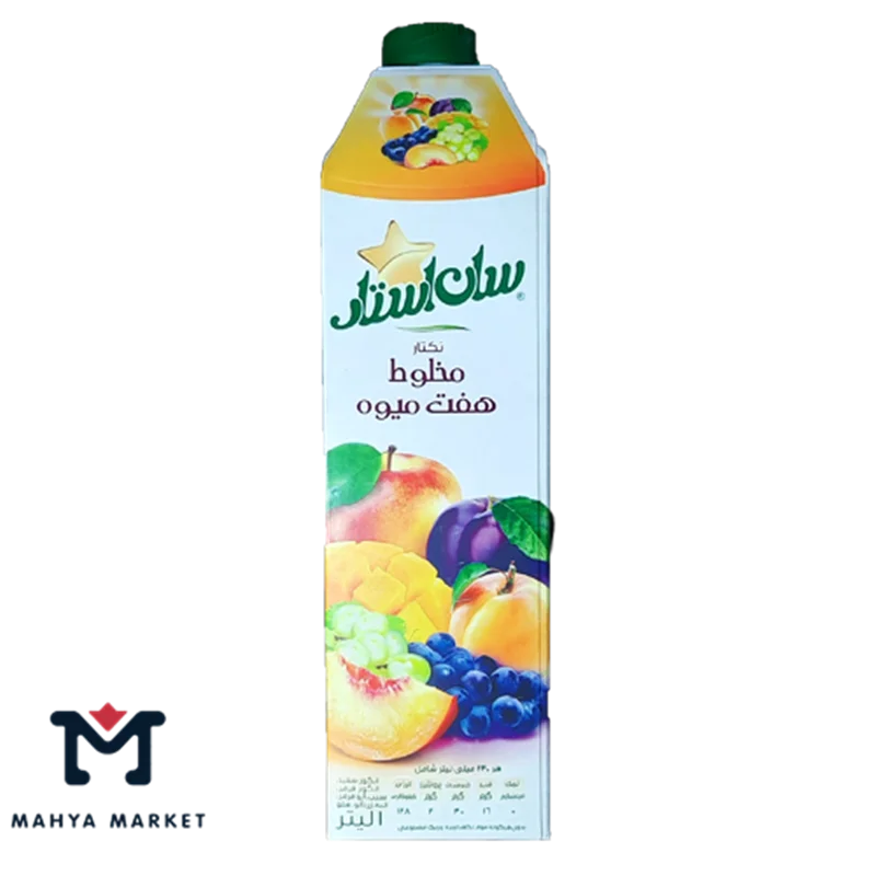 با آبمیوه مخلوط هفت میوه سان استار، طعم بهشتی را تجربه کنید! این نوشیدنی 1 لیتری، با ترکیبی از میوههای تازه و طبیعی، بهترین انتخاب برای تأمین انرژی و نشاط روزانه شماست. بدون مواد نگهدارنده و رنگ مصنوعی، سلامتی و طراوت را به خانهتان بیاورید. هماکنون خرید کنید و از طعم بینظیر آن لذت ببرید!