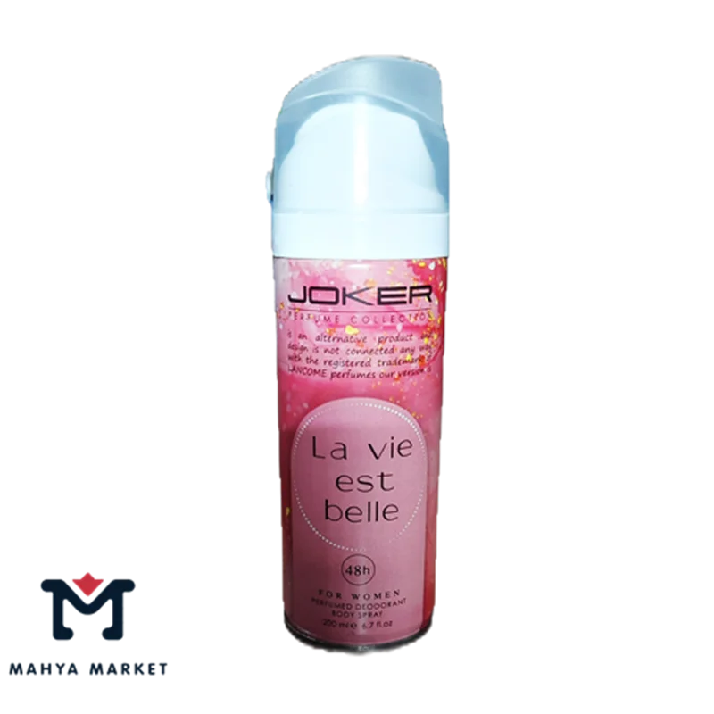 با اسپری بدن زنانه جوکر مدل La Vie Est Belle، ظرافت و جذابیت را به هر لحظه از روزتان بیاورید. با رایحهای دلنشین و ماندگاری بالا، این اسپری ۲۰۰ میلیلیتری بهترین انتخاب برای بانوانی است که به زیبایی و اعتماد به نفس اهمیت میدهند. امروز سفارش دهید و تجربهای متفاوت از طراوت و شادابی را احساس کنید!